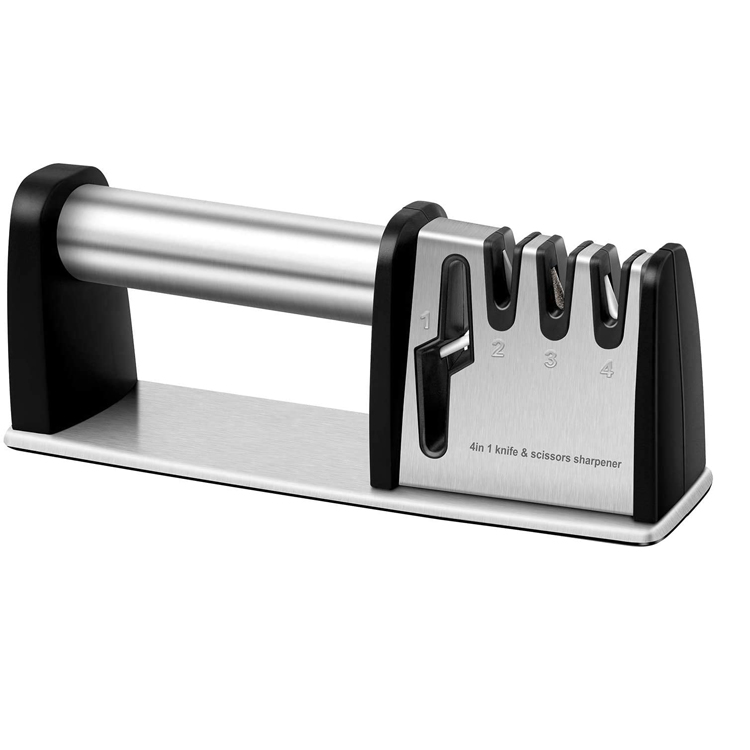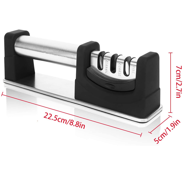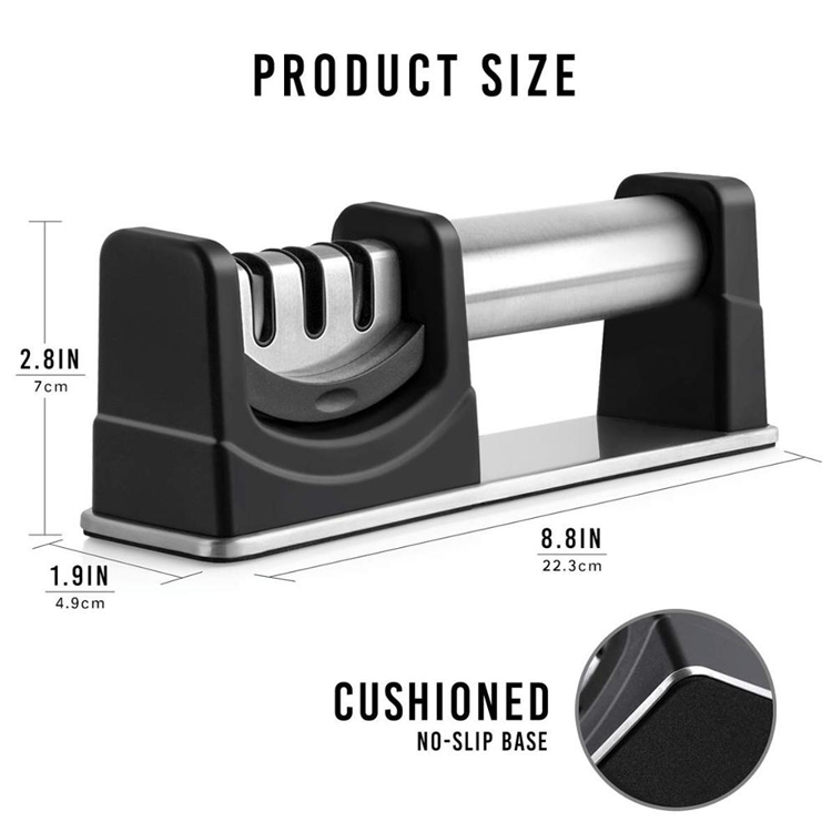 • Designed with a non-slip base, our kitchen knife sharpener offers comfortable control while you work.