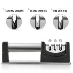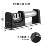 • 3-Step Knife Sharpener: With our incredible 3-slot system, we’re revolutionizing the art of knife sharpening! The 1st diamond sharpening rod repairs and straightens damaged blades before the 2nd slot sharpens to restore its V-shape. Finally, the 3rd slot fine tunes for a clean polish.