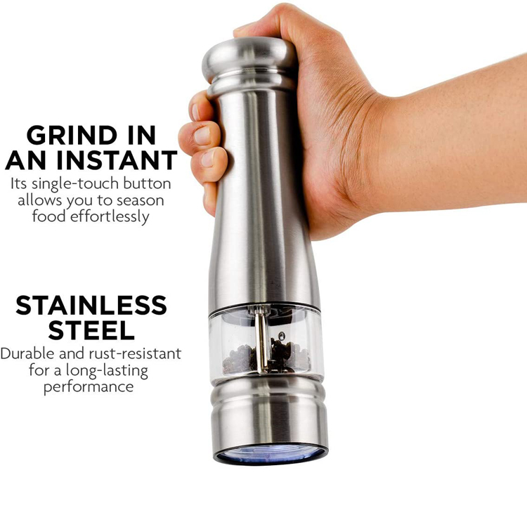 • Easy-Clean Washable Hoppers: electric salt and pepper grinder set features separate compartments, keeping flavors pure. Its washable hoppers make maintaining the salt and pepper electric grinder set effortless
