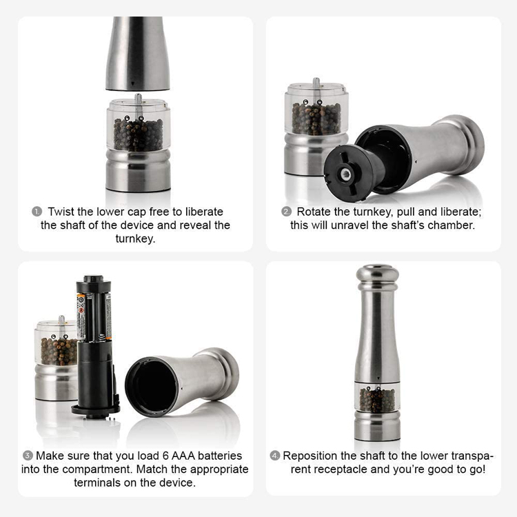 • One-Year Service Guarantee: The gravity electric salt and pepper grinder set offers full service coverage within the first year. Our attentive team will help resolve any issues promptly