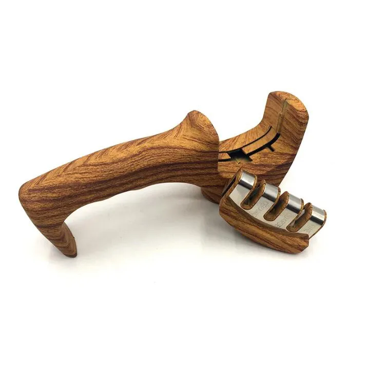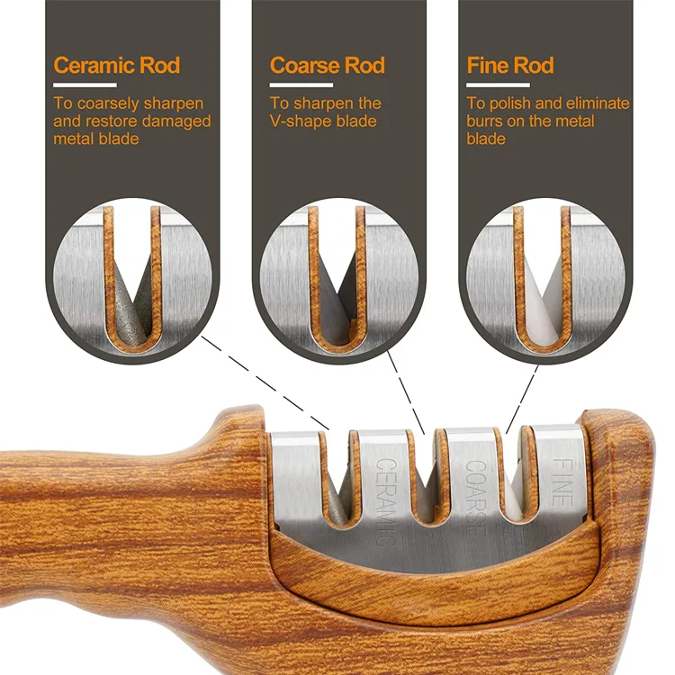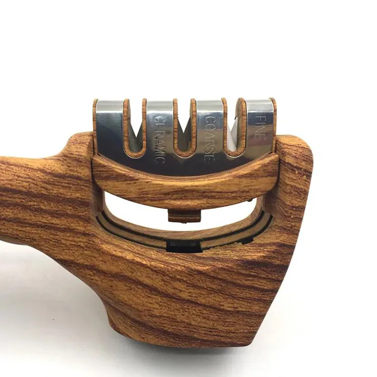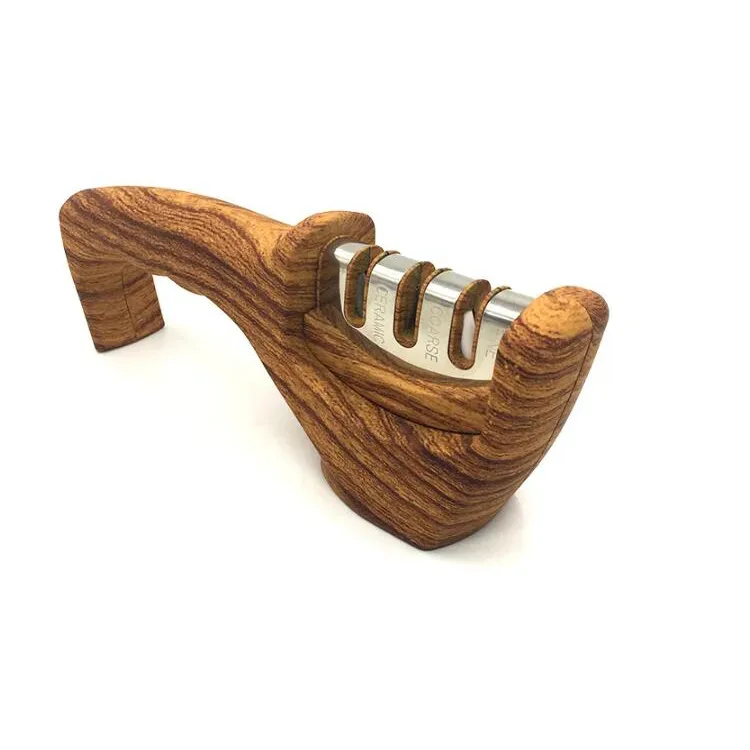 Multifunctional 3 Stage Knife Sharpener Wooden Pattern Design for Efficient Sharpening