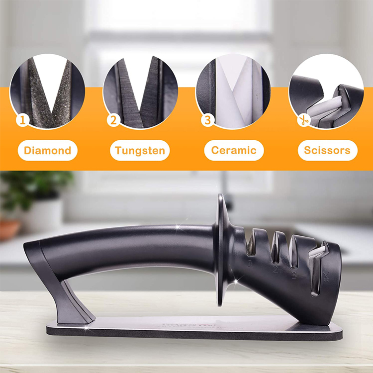 Plastic 4 in 1Household Kitchen Knife Sharpener Machine Tungsten Diamond Steel Material Manual Knife Scissors Sharpener Tool