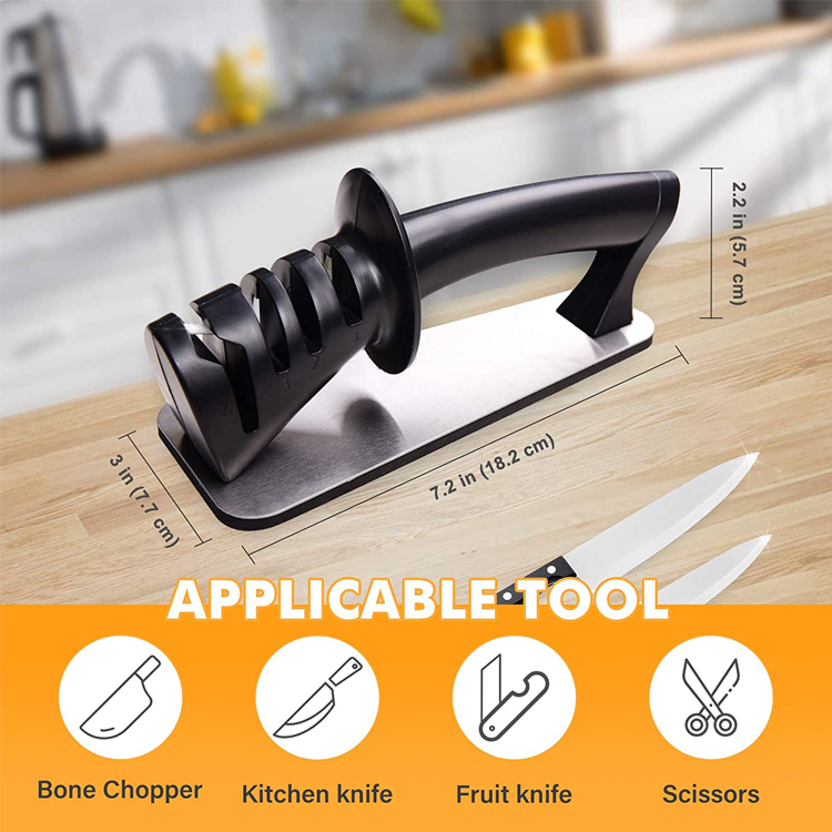 • Designed with a non-slip base, our kitchen knife sharpener offers comfortable control while you work.