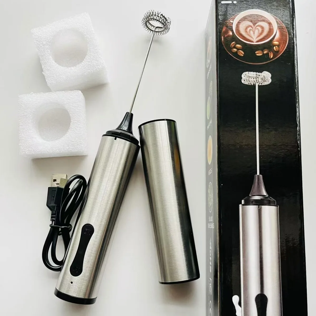USB Rechargeable Electric Classic Design Coffee & Milk Frother Eco-Friendly Household Egg Mixer Beat with Tea Tools